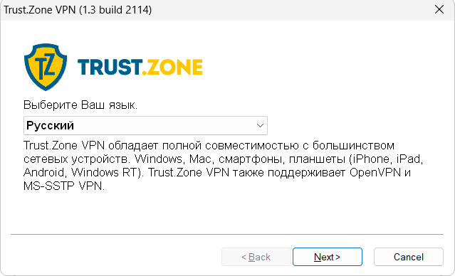 Система начнёт скачивать нужный файл. После перейдите в свою папку загрузок и запустите инсталлятор. На главном экране выберите язык установки и нажмите Next для продолжения установки.