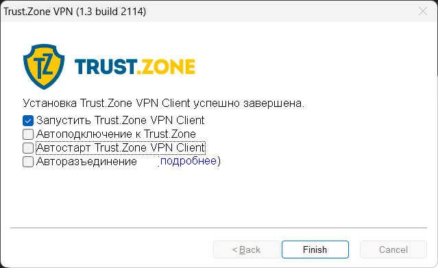 Выберите нужные вам решения и нажмите Finish.